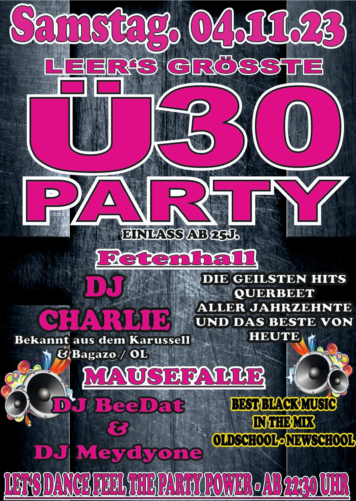 Vorankündigung ... Ü 30 Party mit DJ Charlie in der Fetenhall in Leer